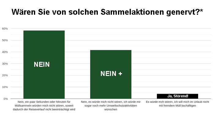 Ziele des Vereins: Schutz der Umwelt durch Unterstützung und Realisierung von Umweltschutzprojekten. Die Idee für die aktuelle Kampagne: Bei jedem Ausflug ein Stück Müll, bevorzugt Plastikmüll einsammeln. So entstand die Idee für "One Trip One Pick": ![]() Während einer Bootsfahrt auf dem Amazonas in Brasilien sah ich Plastikflaschen und leere Ölkanister auf dem Wasser treiben und dachte mir: "Die gehören aber nicht hierher!". Dann dachte ich mir: Wenn jedes Ausflugsboot bei jeder Ausfahrt auch nur ein Stück Müll einsammeln würde, wäre viel geholfen, es würde den Reisablauf nicht beeinträchtigen und den meisten Teilnehmern sicher sogar Spaß machen. Teilnehmende Reisebüros und Tour-Operator könnten auch mit dem "One Trip One Pick"-Siegel werben und Gäste, die sich wegen dieses Siegels für einen speziellen Veranstalter entschieden haben, würden auch auf die Durchführung achten. Wir hoffen auch, dass bei einem Ausflug unter der "One Trip One Pick" - Flagge sowohl Passagiere als auch Personal deutlich mehr Hemmungen haben würden, z. B. Müll einfach aus dem Fahrzeug zu werfen oder sonstwie wild zu entsorgen. Auch Privatpersonen sind herzlich eingeladen, mitzumachen, egal ob mit Wasser- oder Landfahrzeug! Eine Win-Win-Win-Situation! (Umwelt - Passagiere - Reiseveranstalter) Insgesamt soll es allen Spaß machen und es soll sich niemand zu etwas unzumutbarem genötigt sehen. Also was wir nicht wollen ist, daß ein großes Schiff wegen einer Plastikflasche ein riesiges Manöver macht! Der anschließende Gedanke war, daß man es ja auch bei Fahrten mit Landfahrzeugen machen könnte .. :-) Jeder kann mithelfen ! Wilden Plastikmüll gibt es inzwischen fast überall auf dem Planeten! Nach neuesten Studien ( z.B. Uni Bayreuth) kommt der Plastikmüll als Mikroplastik über Regen und Wind zu uns zurück und gelangt in unsere Böden und unsere Nahrung! Gemeinsam etwas zu dagegen unternehmen macht Spaß! "One Trip, One Pick" heißt das Siegel, das umweltbewusste Reiseunternehmen und Reiseveranstalter demnächst verwenden dürfen, wenn sie mit uns kooperieren. Wer kann mitmachen: Jeder, der einen Fuß vor die Türe setzt! Aktuelle Spendenkampagne: HIER! Wer soll besonders angesprochen werden: Tour Operator, die (auch) mit kleineren Fahrzeugen unterwegs sind. Was haben die Tour Operator / Reieveranstalter davon? Tour Operator / Reieveranstalter, die sich beteiligen dürfen im ersten Jahr kostenfrei, später gegen einen kleinen Obolusr, gestaffelt nach Unternehmensgröße unser "I-Clean-the-planet // One-Trip-One-Pick" -Siegel führen und heben sich dadurch gegenüber den Mitbewerbern hervor. Desweiteren können sich interressierte Kunden über die One-Trip-One-Pick.org - Homepage direkt beteiligte Unternehmen zur Reisebuchung auswählen. Umfrage November 2022: ![]() ![]() *Der vollstandige Text der zweiten Frage: Würden Sie es als störend empfinden, wenn auf Ihrer Reise bei jedem Ausflug ( > 20 Minuten) mit kleineren Fahrzeugen (bis 4 To zGG) mindestens ein Stück (Plastik-) Müll aus der Natur entfernt wird, soweit das mit angemessenem Aufwand möglich ist und ohne daß der Reiseablauf dadurch beeinträchtigt wird? Oder kurz gesagt: Wären Sie von solchen Sammelaktionen genervt?